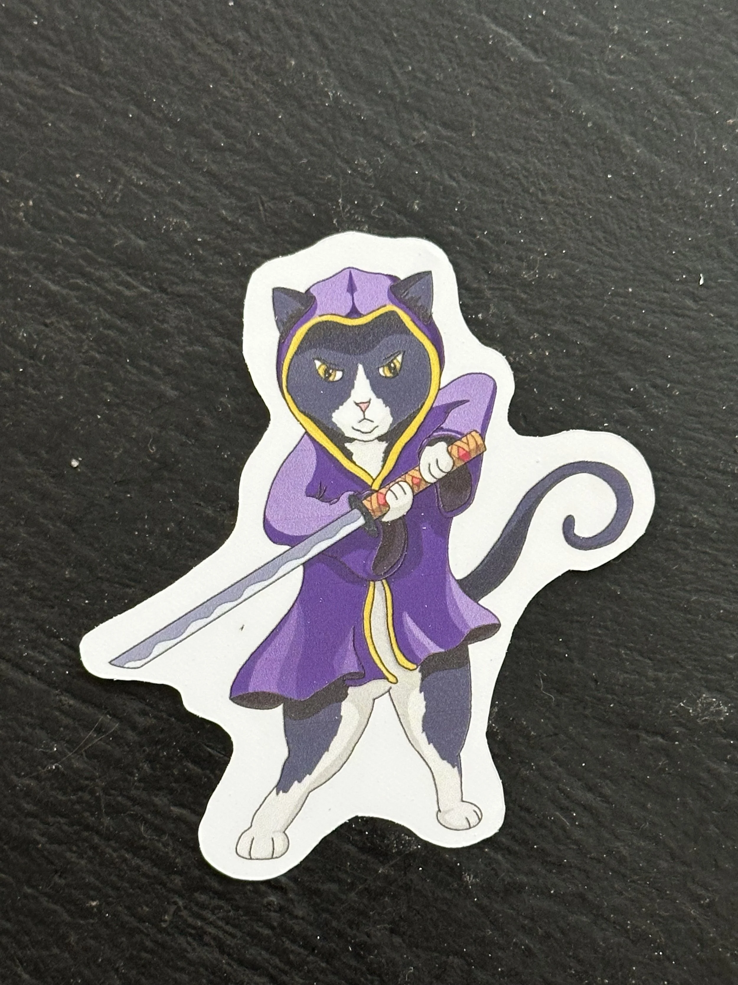 Shop › Ninja Cat, Sticker Image 1 of 2 Image 2 of 2 Ninja Cat, Sticker $3.50 Sticker featuring a cat with a ninja sword Quantity: Add To Cart Added! Sticker featuring a cat with a ninja sword